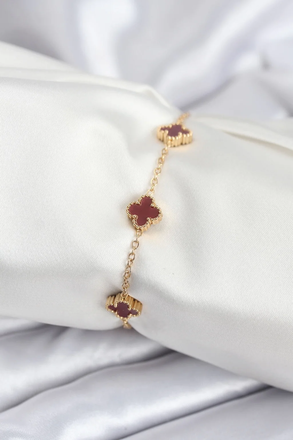 316L Çelik Gold Renk Bordo Baby Boy Yonca Kadın Bileklik