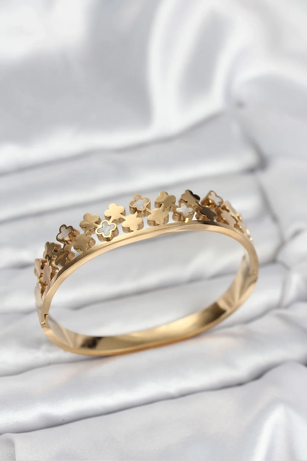 316L Çelik Gold Renk Minimal Yoncalı Kadın Kelepçe Bileklik