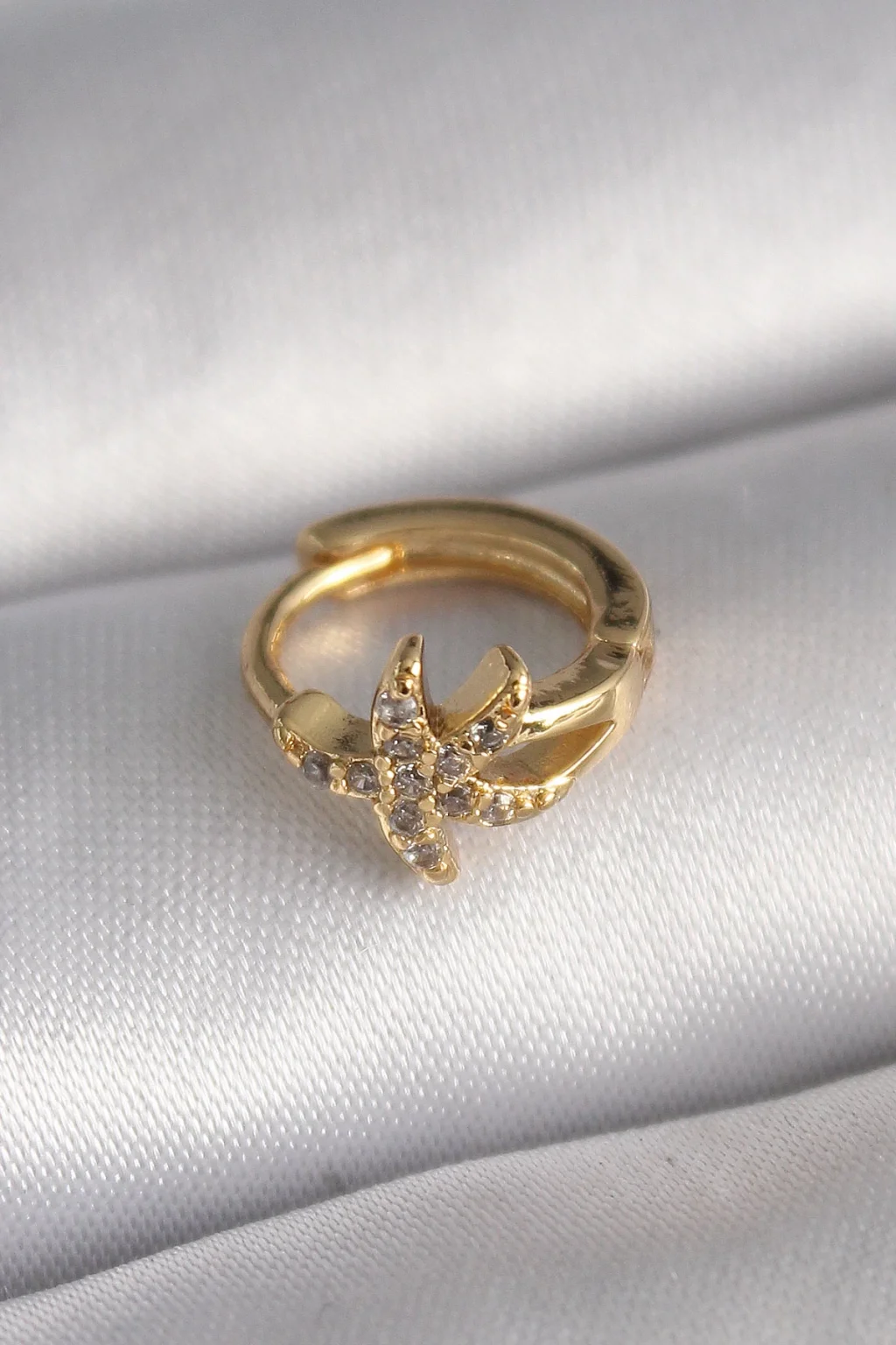 316L Çelik Gold Renk Zirkon Taşlı Deniz Yıldızı Model Tragus Piercing - TJ-PR1318