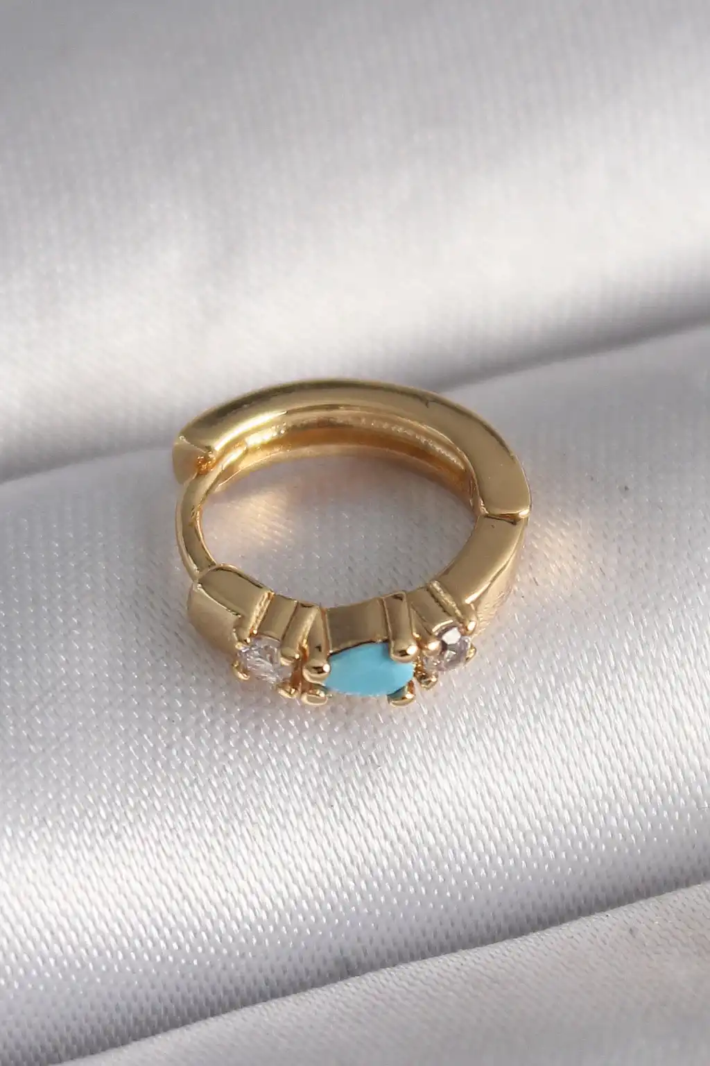 316L Çelik Gold Renk Zirkon Taşlı Mavi Taş Detay Tragus Piercing - TJ-PR1324