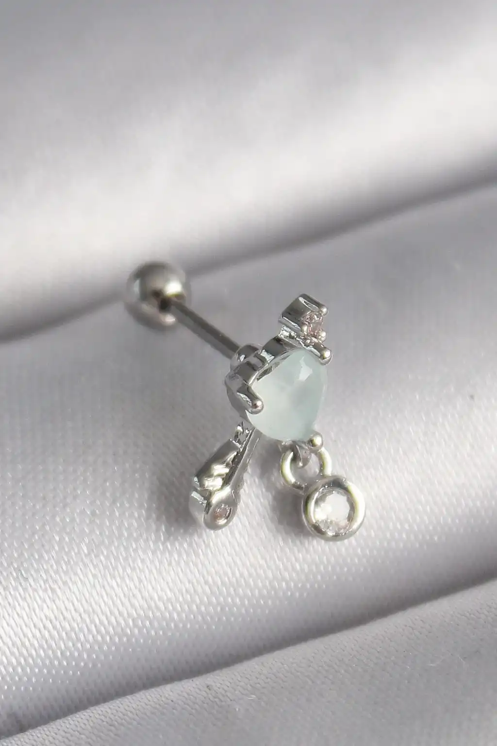 316L Çelik Gümüş Renk Beyaz Minelik Kalp Sallantı Zirkon Taş Detay Tragus Piercing - TJ-PR1229