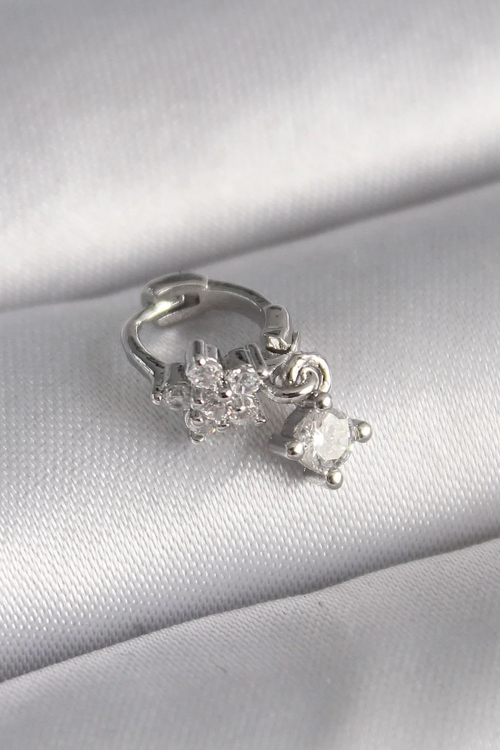 316L Çelik Gümüş Renk Zirkon Taşlı Çiçek Model Sallantı Detay Tragus Piercing - TJ-PR1311