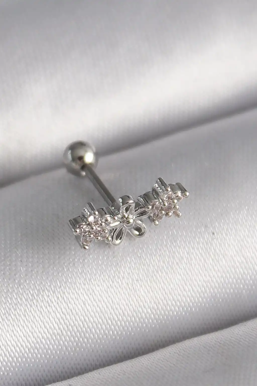 316L Çelik Gümüş Renk Zirkon Taşlı Çiçek Tragus Piercing - TJ-PR1247