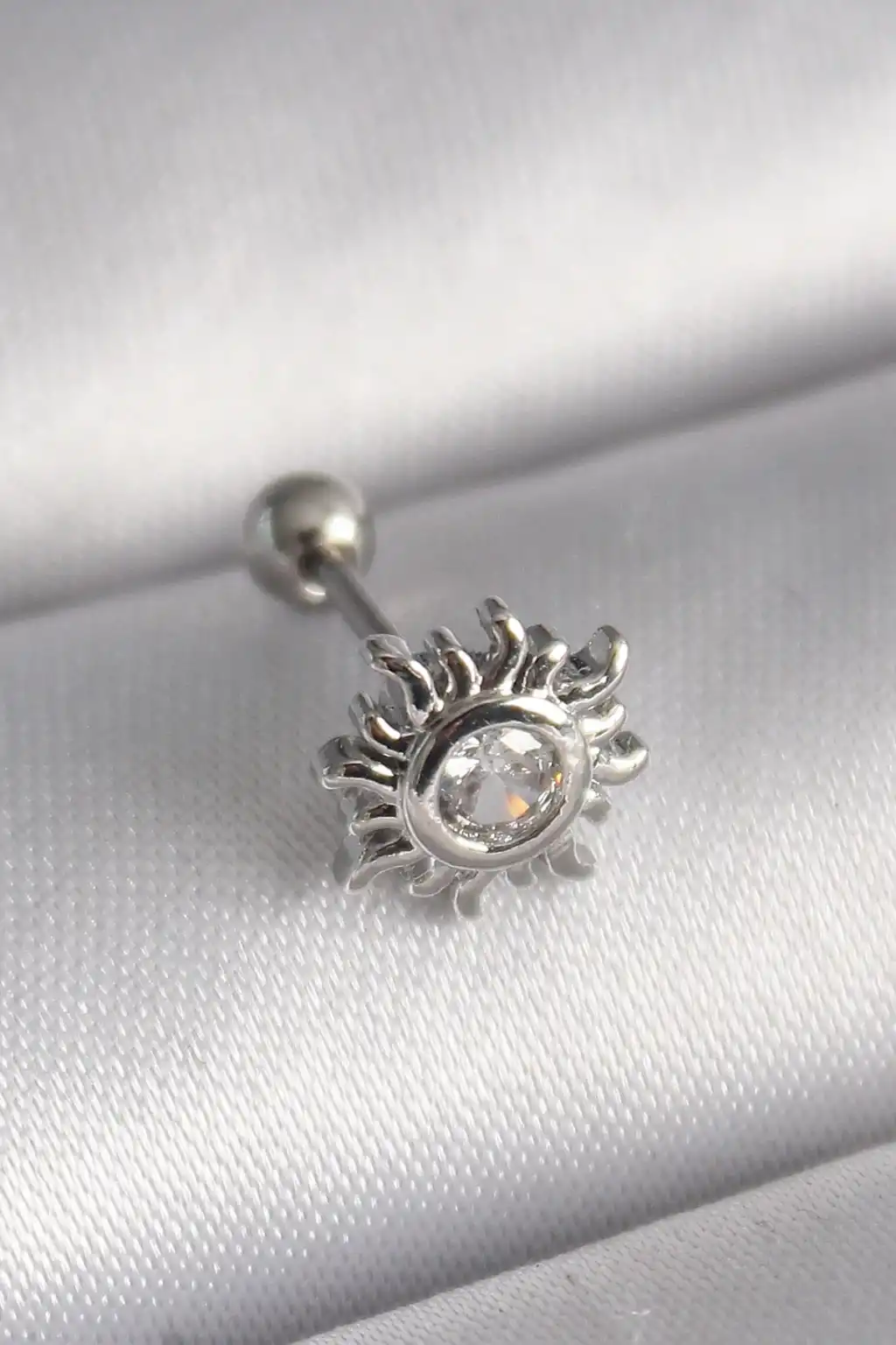 316L Çelik Gümüş Renk Zirkon Taşlı Güneş Tragus Piercing - TJ-PR1279