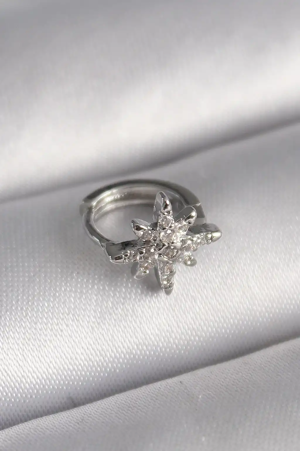 316L Çelik Gümüş Renk Zirkon Taşlı Kutup Yıldızı Model Tragus Piercing - TJ-PR1301