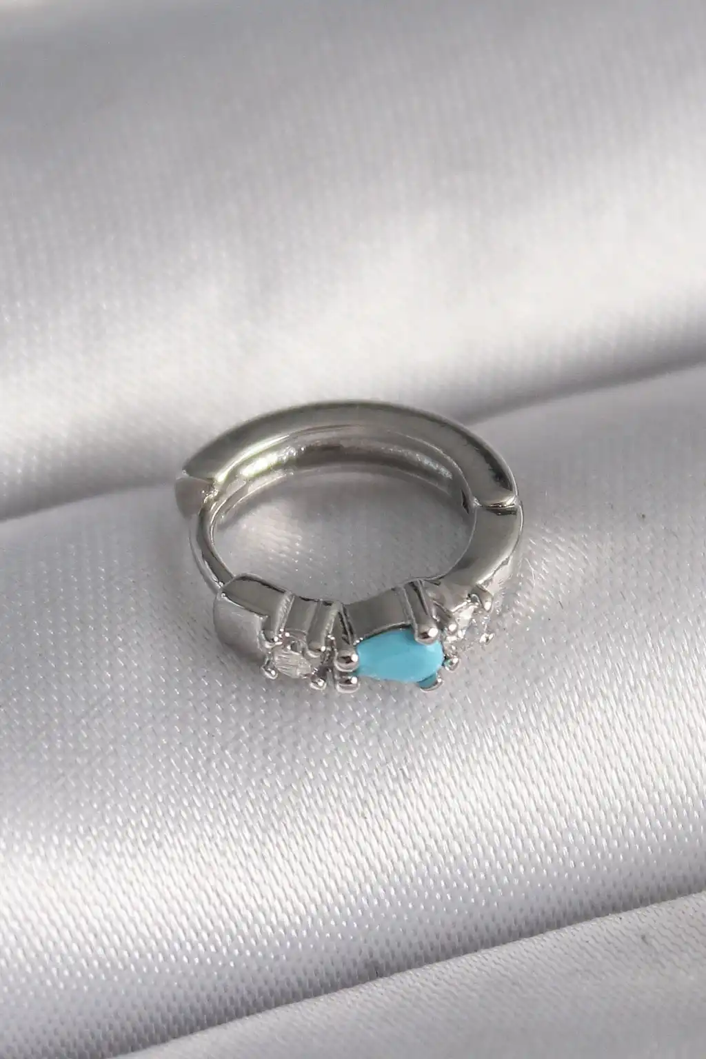 316L Çelik Gümüş Renk Zirkon Taşlı Mavi Boncuk Detay Tragus Piercing - TJ-PR1325
