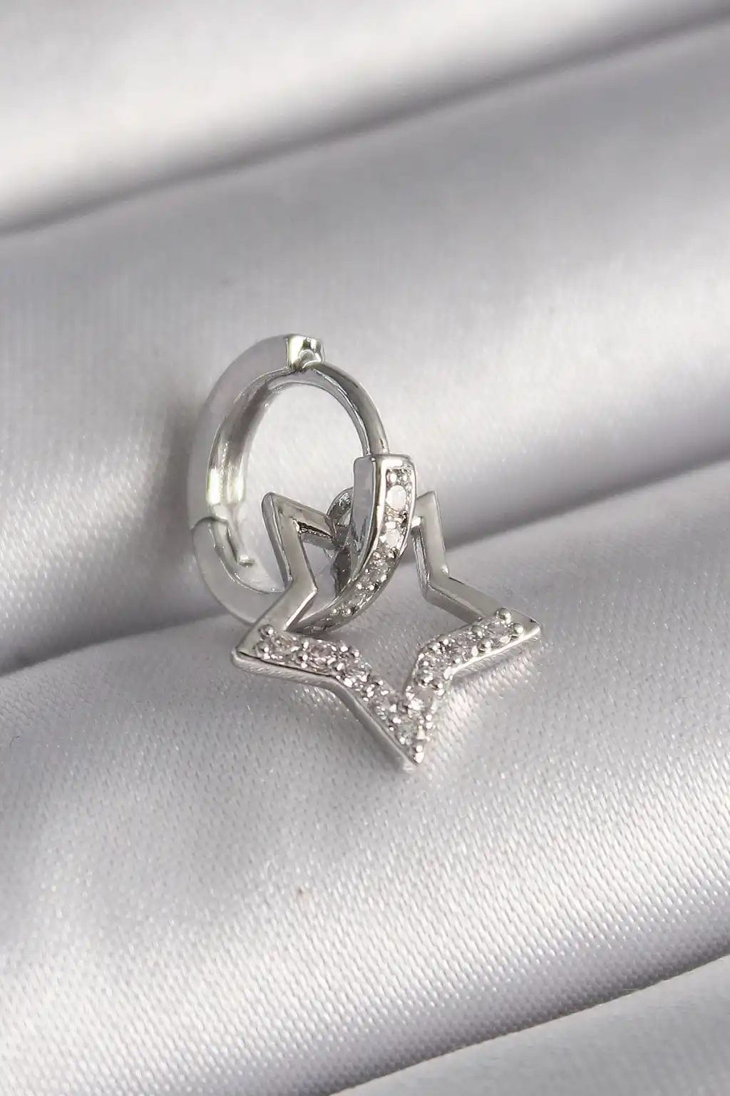 316L Çelik Gümüş Renk Zirkon Taşlı Sallantı Yıldız Model Tragus Piercing - TJ-PR1317