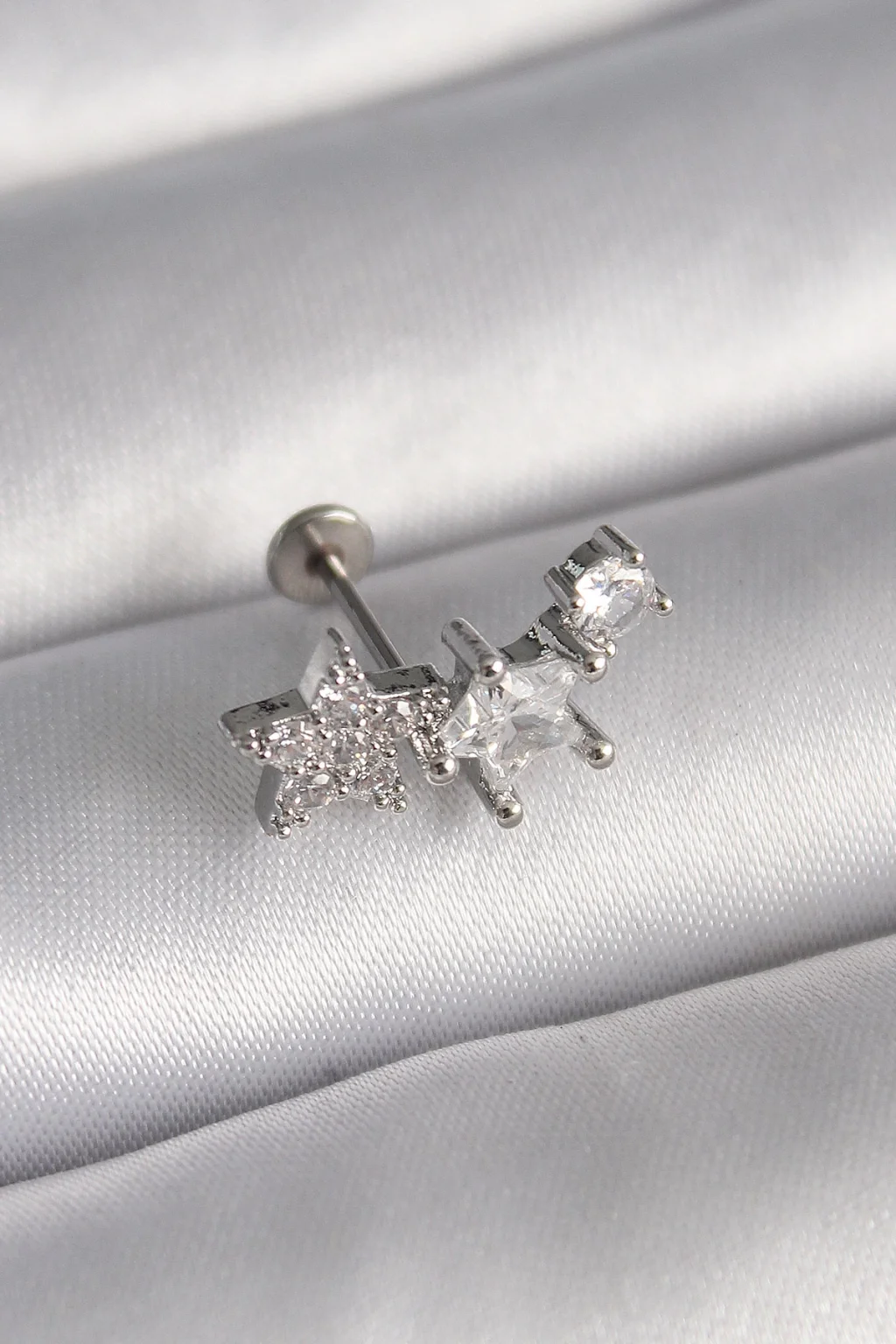316L Çelik Gümüş Renk Zirkon Taşlı Yıldız Model Tragus Piercing - TJ-PR1339