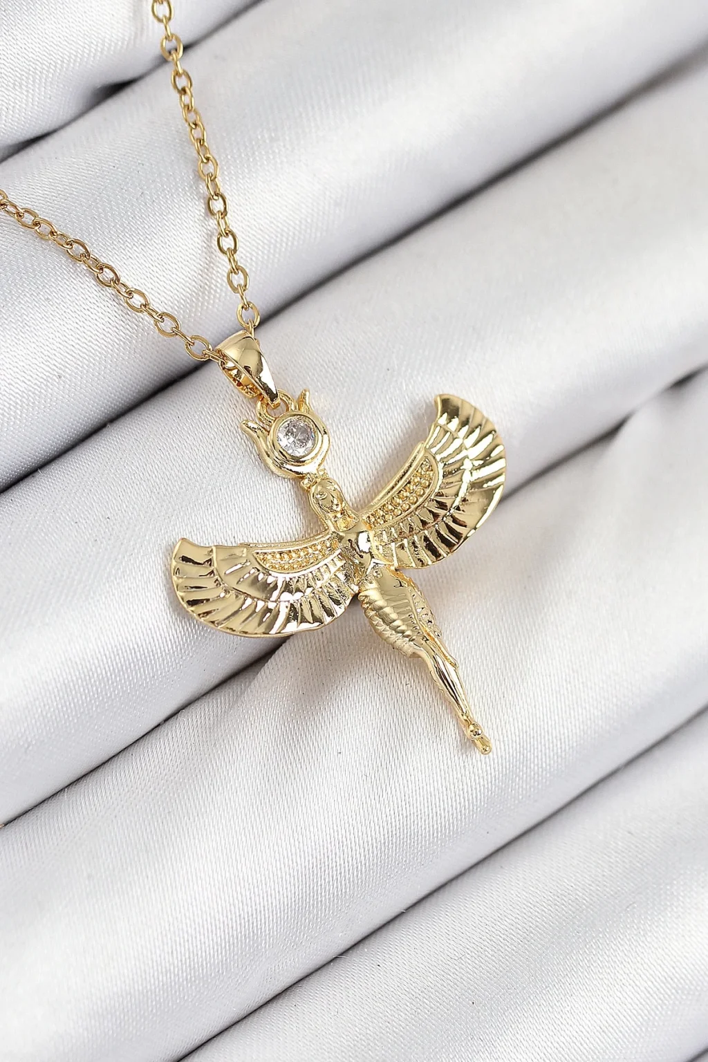 316L Çelik Zirkon Taşlı Melek Model Gold Renk Kadın Kolye