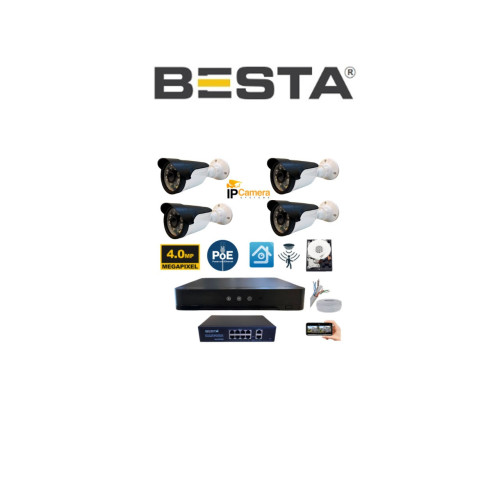 4 ADET X 4 MP 6 ATOM LED IP POE DIŞ MEKAN GÜVENLİK KAMERASI