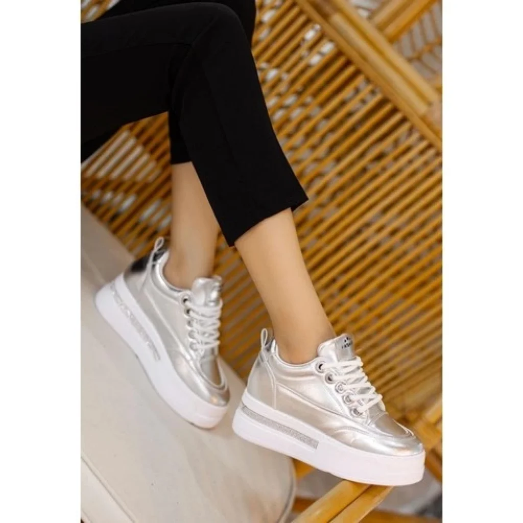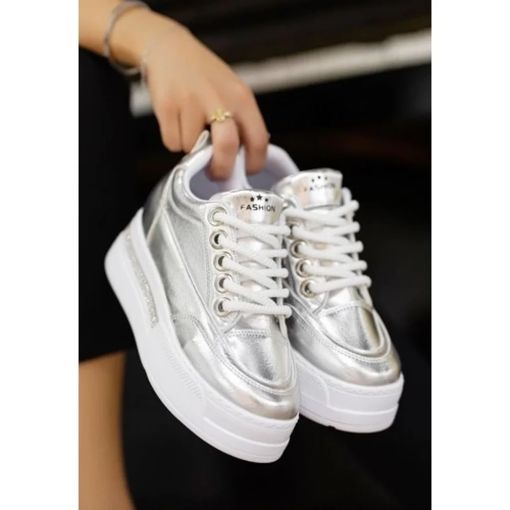 7erbilden Lulu Gümüş Rugan Bağcıklı Spor Ayakkabı
