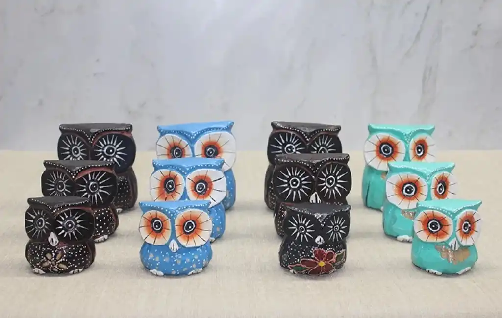 AHŞAP 3'LÜ BAYKUŞ SETİ MODEL 5Ürün Özellikleri7x8x10 cm boyutlarında olan bu üçlü baykuş seti, doğal ahşap malzemeden el işçiliğiyle üretilmiştir. Her bir baykuş, özenle işlenmiş detayları ve zarif tasarımıyla dikkat çeker. Bu dekoratif set, otantik ve nostaljik bir görünüm sunarak evinizde veya ofisinizde hoş bir atmosfer yaratır. Baykuşlar, bilgeliği ve koruyucu enerjiyi simgeler, bu yüzden hem estetik hem de anlamlı bir dekorasyon ürünüdür. Ahşabın doğal dokusu ve işçilik detayları, her bir parçayı benzersiz kılar.Paket İçeriği1 Adet Ahşap 3'lü Baykuş Seti Model 5