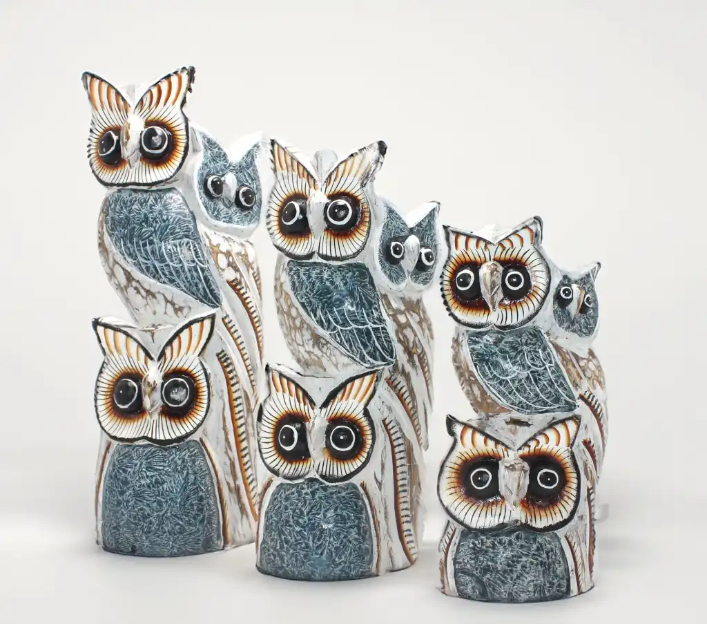 AHŞAP 3'LÜ BAYKUŞ SETİ MODEL 6Ürün Özellikleri30x40x50 cm boyutlarında olan bu üçlü baykuş seti, doğal ahşap malzemeden el işçiliğiyle üretilmiştir. Büyük boyutları ve detaylı işçilikleriyle dikkat çeker. Her bir baykuş figürü, özenle işlenmiş detaylar ve estetik tasarımlarıyla ev veya ofis dekorasyonuna benzersiz bir şıklık katmaktadır. Baykuş figürleri, bilgeliği simgeleyen klasik bir tema ile tasarlanmış olup, hem anlamlı hem de şık bir dekoratif aksesuardır. Ahşabın doğal dokusu ve el işçiliği ile her biri özgün bir parçadır.Paket İçeriği1 Adet Ahşap 3'lü Baykuş Seti Model 6