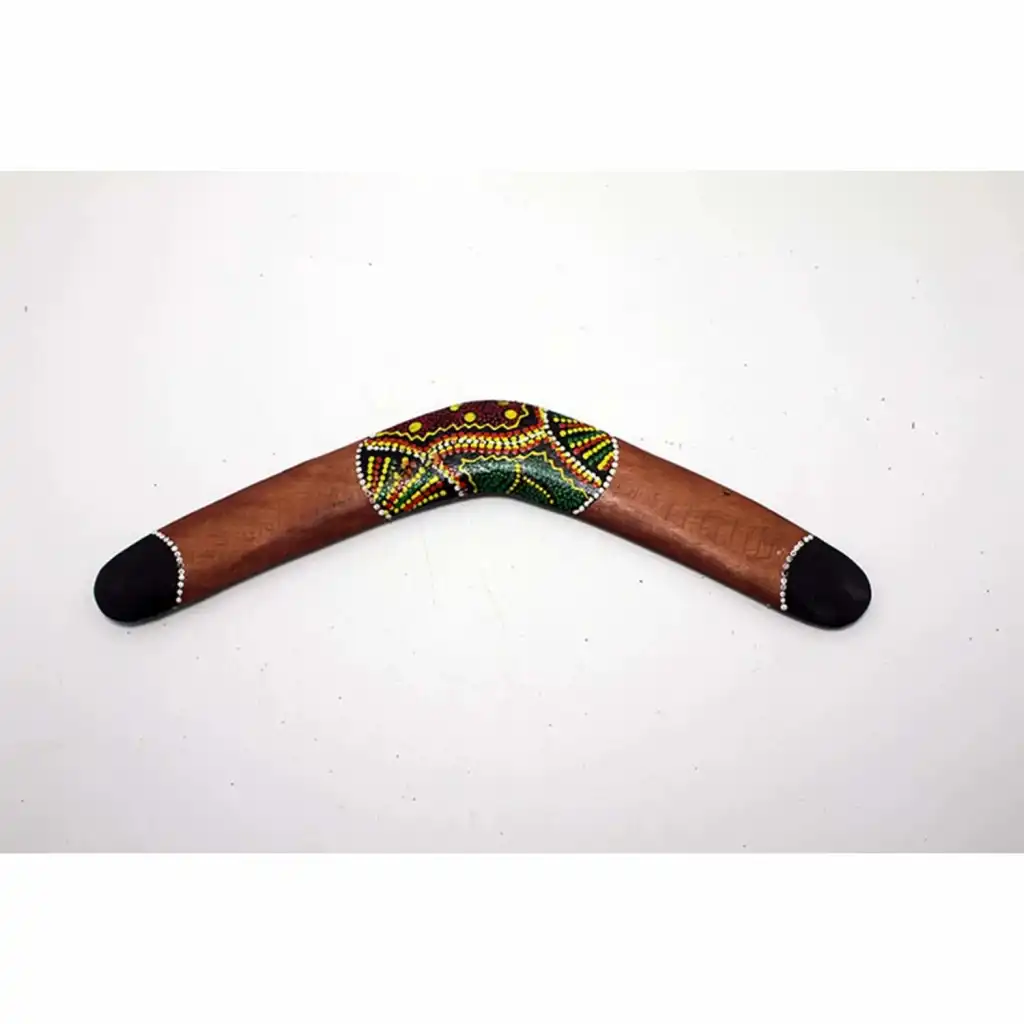 AHŞAP BUMERANGÜrün ÖzellikleriAhşap bumerang, geleneksel tasarımı ve renkli el boyaması detaylarıyla estetik ve işlevselliği bir araya getirir. 40 cm boyutundaki bu bumerang, dayanıklı ahşap malzemeden üretilmiş olup, uzun ömürlü kullanım sunar. Denge ve aerodinamik yapısıyla doğru teknikle atıldığında geri dönme özelliğine sahiptir. Hem spor hem de dekoratif amaçlı kullanılabilecek özel bir tasarıma sahiptir. Doğa sporları, açık hava aktiviteleri ve koleksiyon severler için mükemmel bir üründür.Paket İçeriği1 adet Ahşap Bumerang