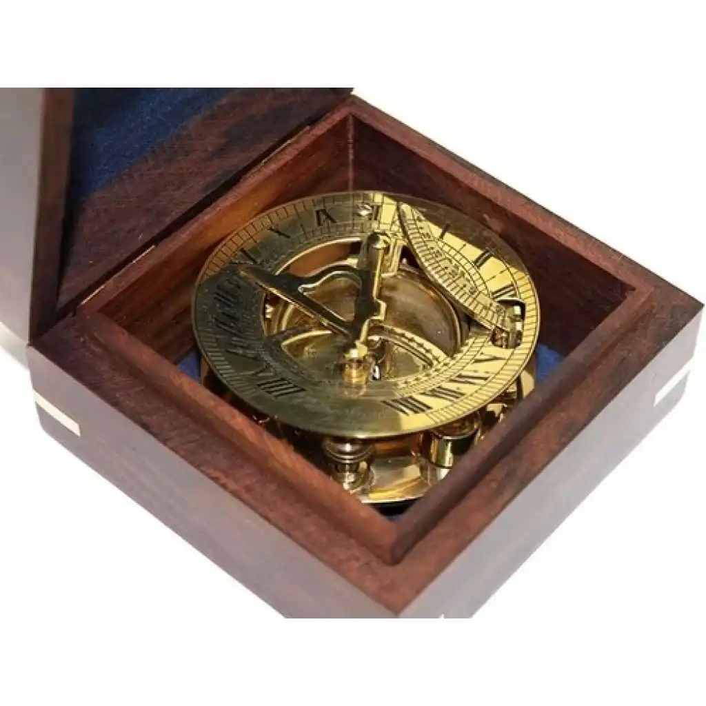 Ahşap Kutulu Pirinç Güneş Saati ve Pusula Modeli 2213