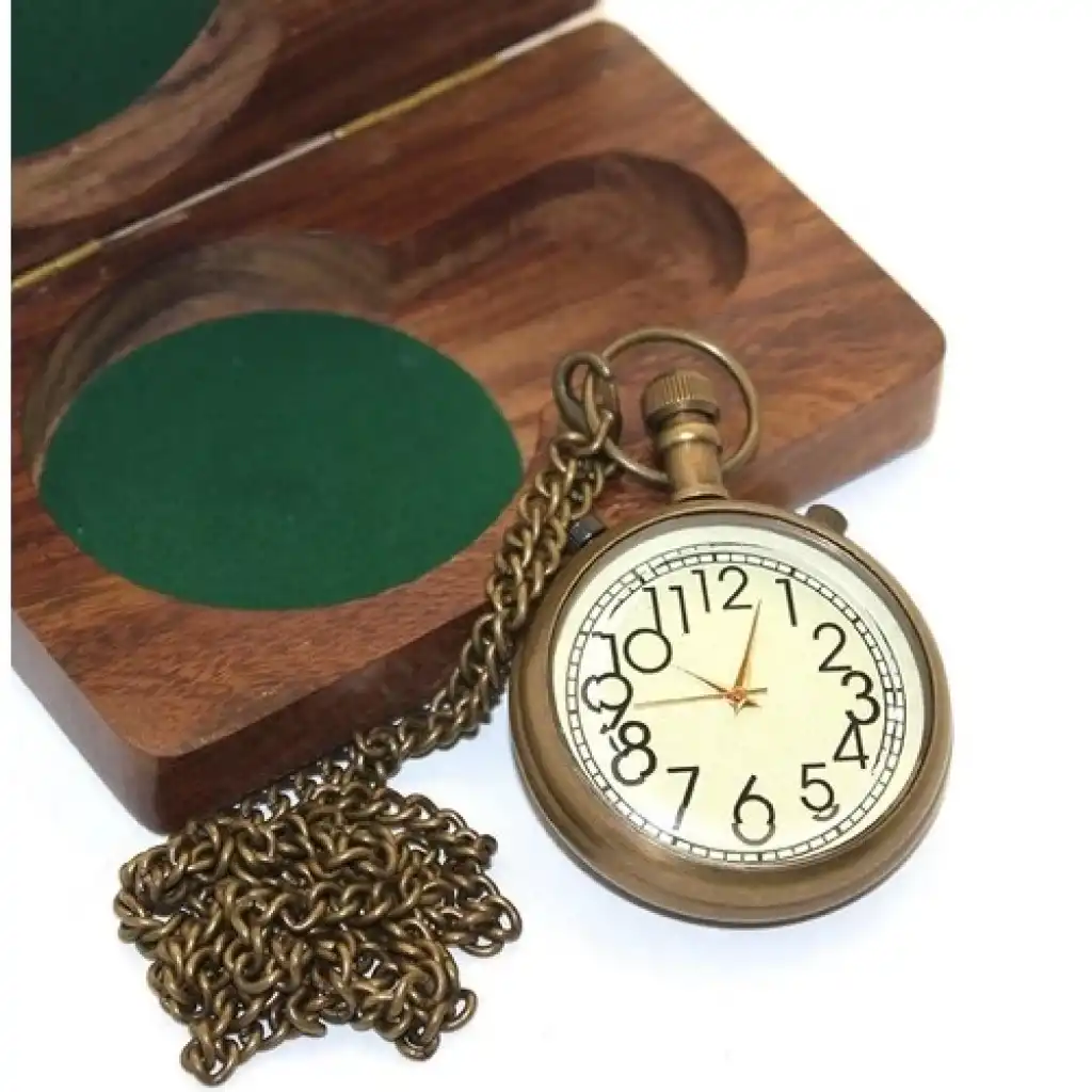 Ahşap Kutulu Pirinç Köstekli Saat KSK2056