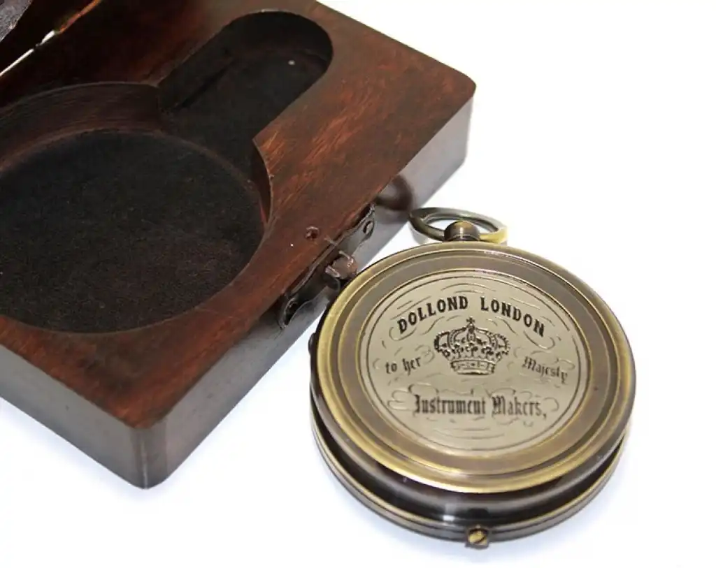 Ahşap Kutulu Üzeri Desenli Pirinç Pusula