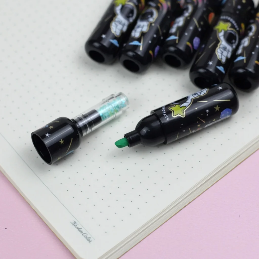 ASTRONOT FOSFORLU KALEM SETİPaket içerisinden 6 adet astoronot tasarımlı farklı renklere sahip fosforlu kalem çıkmaktadır.Sıran fosforlu kalemlerden farklı tasarımı ile oldukça dikkat çekmektedir.Paket İçeriği1 set 6 adet astronot fosforlu kalem seti
