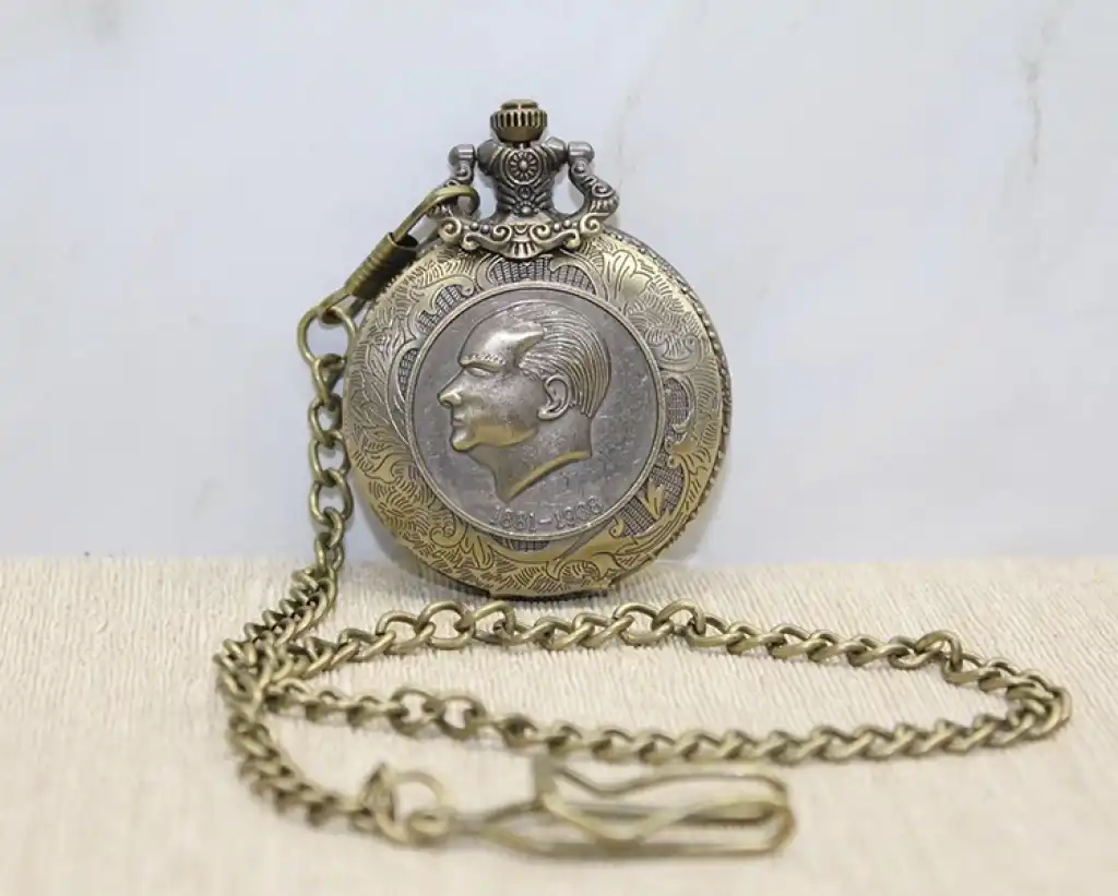 ATATÜRK TASARIMLI KÖSTEKLİ SAATÜrün ÖzellikleriAtatürk tasarımlı köstekli saat, nostaljik ve anlamlı tasarımıyla dikkat çeken özel bir aksesuardır. Bronz kaplama metal gövdesi, Atatürk silueti detaylarıyla zarif bir görünüm sunar. Açılır kapak mekanizması sayesinde saat kadranı kolayca görülebilir ve kullanımı pratiktir. Koleksiyoncular, tarihî ve anlamlı aksesuarları sevenler için mükemmel bir tercih olup, şık bir hediye alternatifi olarak da değerlendirilebilir.Paket İçeriği1 Adet Atatürk Tasarımlı Köstekli Saat