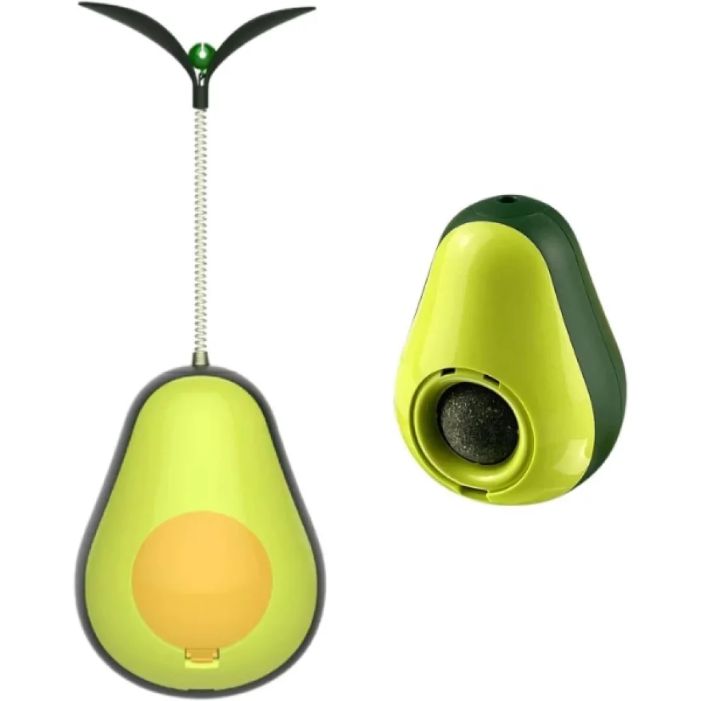 AVOKADO ŞEKLİNDE KEDİ NANELİ VE MAMA HAZNELİ KEDİ OYUNCAĞIÜrün ÖzellikleriAvokado şeklindeki bu eğlenceli kedi oyuncağı, kedinizin hem oyun hem de ödül zamanı geçirmesi için tasarlanmıştır. Tabanı sayesinde dengede kalır ve kolayca devrilmez. Kediniz dokunduğunda sağa sola sallanarak dikkat çeker, böylece oyun isteğini artırır. İç kısmına kedinizin ödül mamasını veya mama yerleştirilebilir, böylece kedi oynarken ödüllendirilir. Ürünün ön kısmına yerleştirilen kedi otu topu, döner mekanizmayla kedilerin ilgisini çeker ve onları sakinleştirir. Ayrıca, üst kısmındaki yaylı yaprak formundaki çubuk, hareket ettikçe kedinin avcılık içgüdüsünü tetikler. Dayanıklı, toksik olmayan plastikten üretilmiştir ve evde tek kalan kediler için idealdir.Paket İçeriği1 Adet Avokado Şeklinde Kedi Naneli ve Mama Hazneli Kedi Oyuncağı
