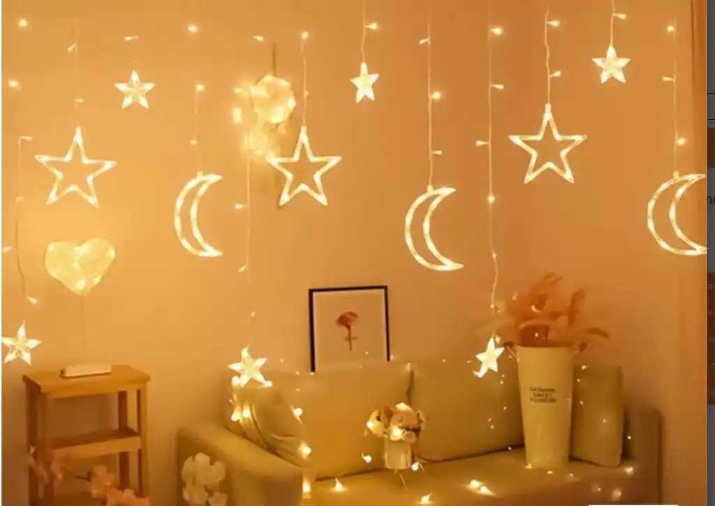 Ay Yıldız Perde Led 3mÜrün Özellikleri:3m PERDE LED ışık rengi:gün ışığı6 SAÇAKLIToplam 12 adet AY VE YILDIZfişli uzatma kablolu8 fonksiyonPaket İçeriği:1 Adet Ay Yıldız Perde Led 3m
