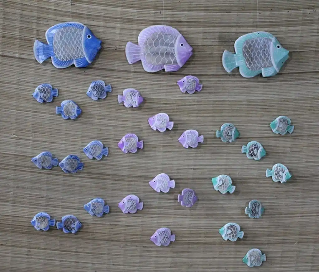 BALIKLI ASMALI RÜZGAR ÇANI Ürün ÖzellikleriBalıklı Asmalı Rüzgar Çanı,  balık figürleri ile tasarlanmış, doğal ahşap malzeme kullanılarak üretilmiştir. Balık figürleri, deniz temalı dekorlara şıklık katarak, mekânınıza huzur veren bir atmosfer sunar. Asmalı tasarım sayesinde pratik bir şekilde her türlü alanda kullanılabilir ve rüzgarla hareket ettiğinde melodik bir ses çıkarır. Bahçe, balkon veya iç mekanlar için mükemmel bir dekoratif üründür. Ahşabın doğal dokusu ve balık figürleri, mekânınıza doğal ve canlı bir hava katarken, estetik ve fonksiyonellik sunar. Hem dekoratif hem de fonksiyonel olarak kullanılabilen bu ürün, ayrıca hediye olarak da harika bir tercihtir.Paket İçeriği1 adet Balıklı Asmalı Rüzgar Çanı