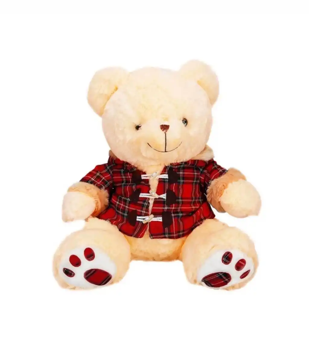 BFS 1510 Ekose Elbiseli Peluş Ayı 45 cm -Sunman