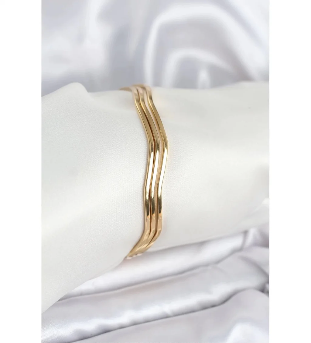 BFS 316L Çelik Gold Renk 65 mm Ajda Zikzak Model 3lü Kadın Bileklik