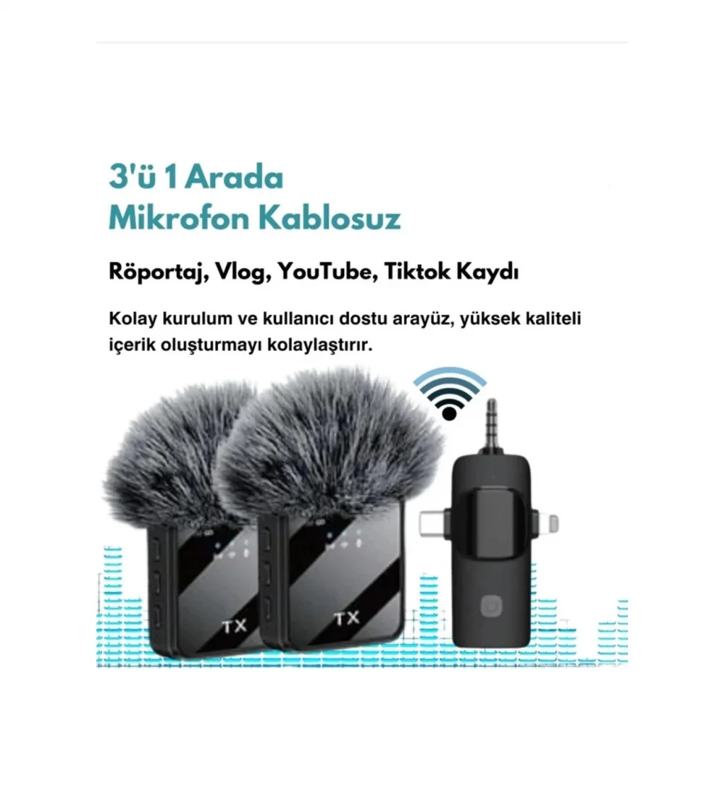 BFS Yüksek Kalite Profesyonel 3 In 1 Kablosuz Taşınabilir Yaka Mikrofonu Tüylü