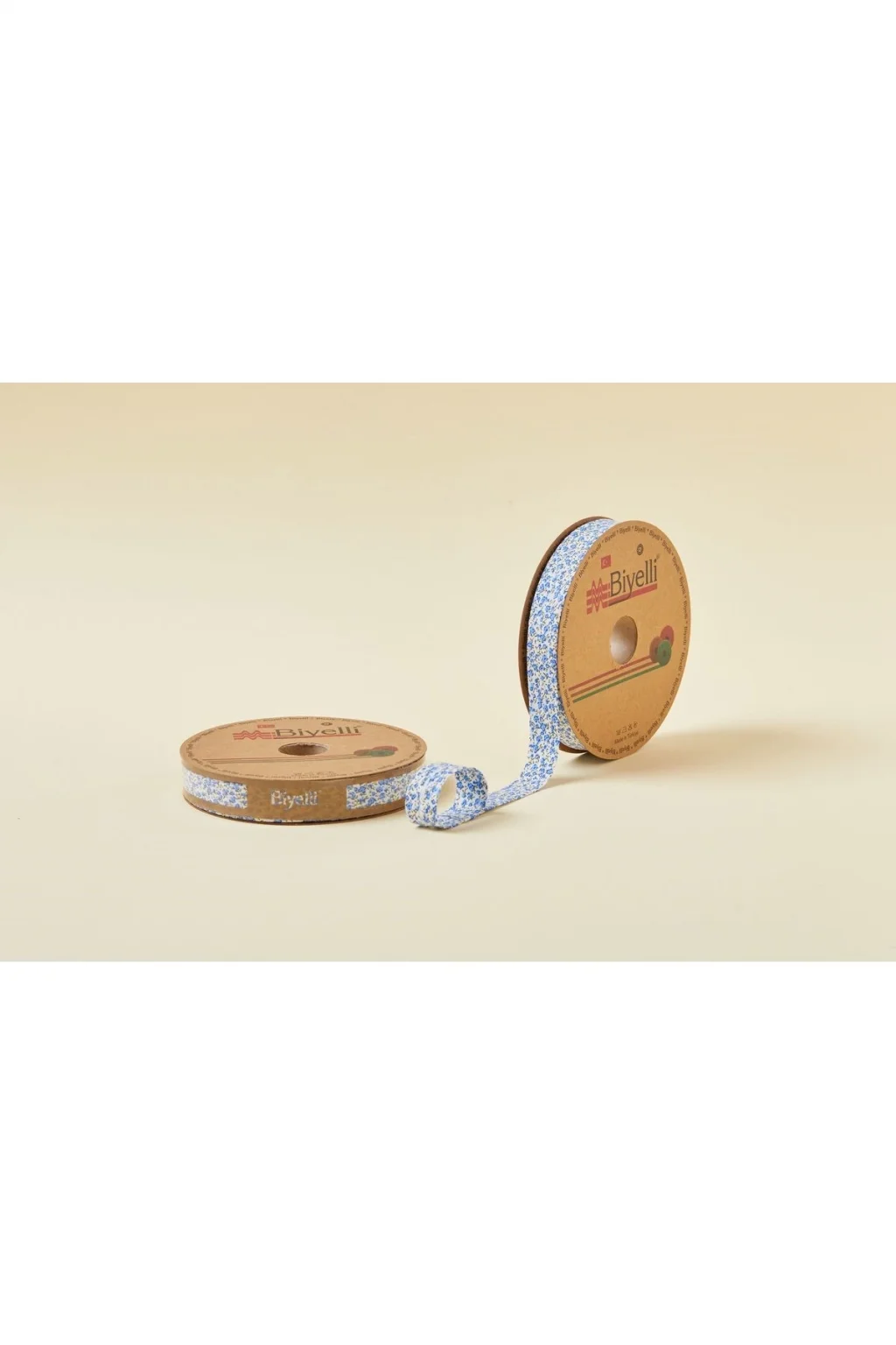 Biye Çiçekli Katlı A01 Mavi 2 cm 25 Metre %65 Koton %35 Polyester