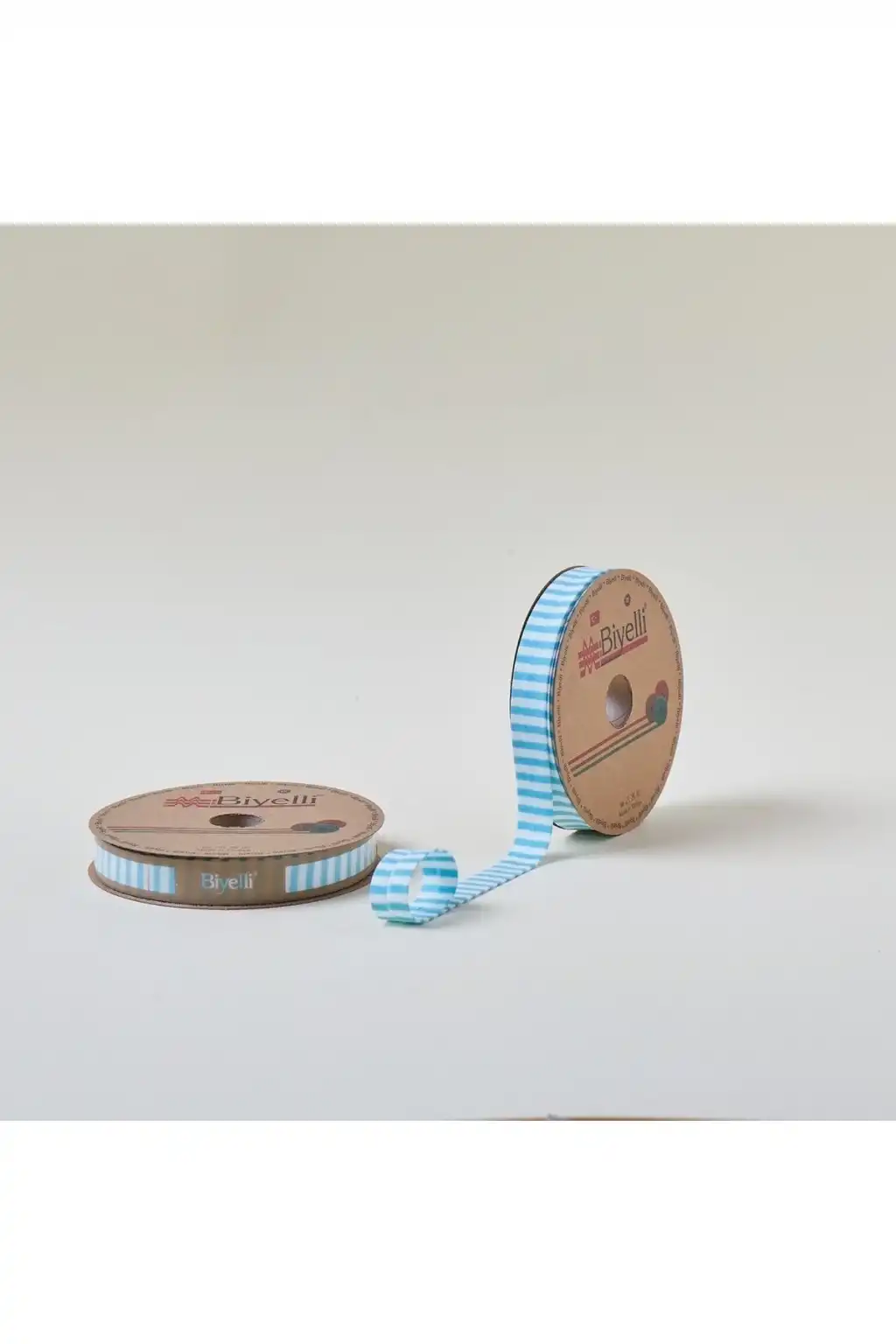 Biye Kalın Çizgili Katlı F09 Turkuaz 2 cm 25 Metre %65 Koton %35 Polyester