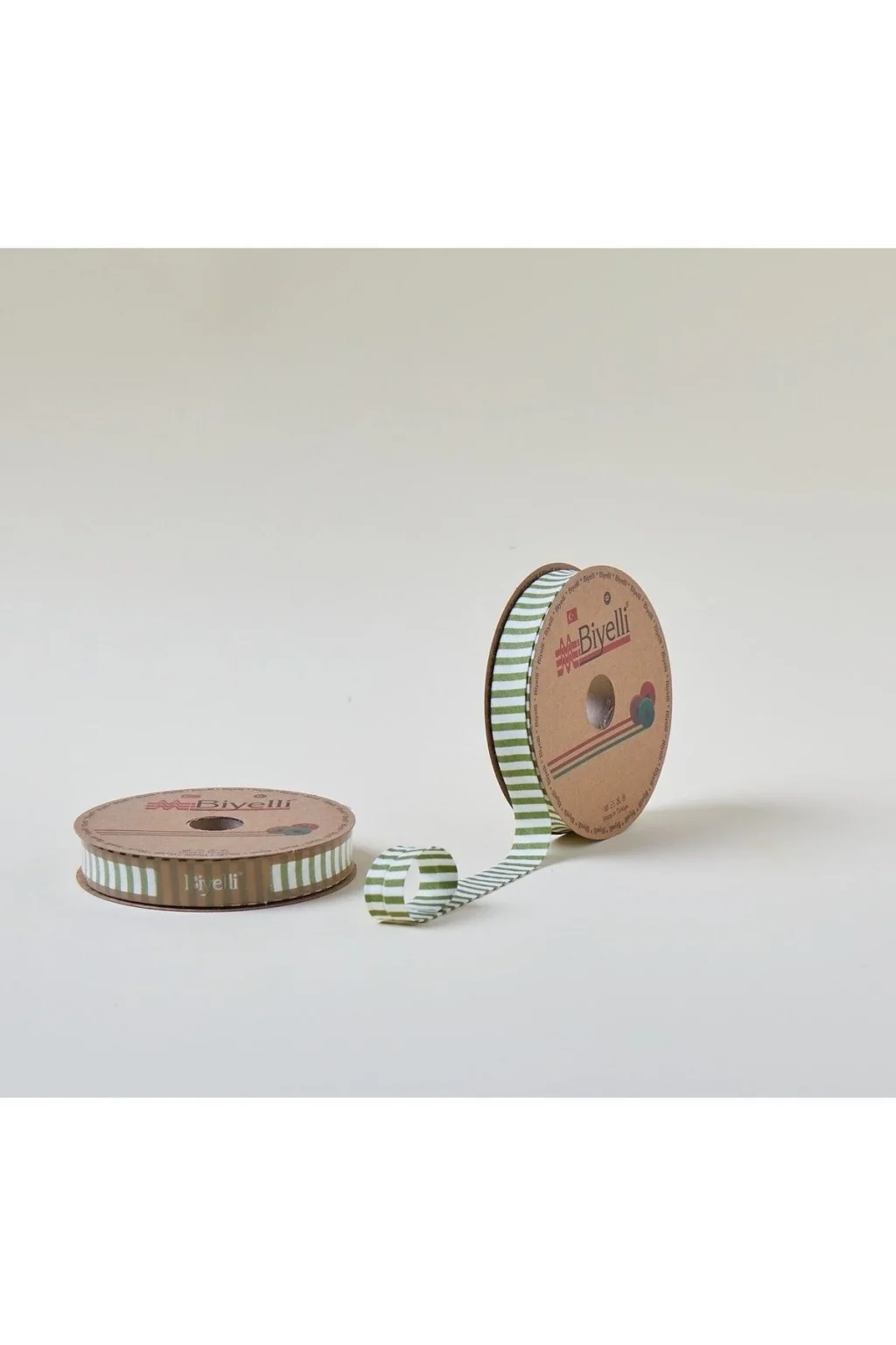 Biye Kalın Çizgili Katlı F12 Yeşil 2 cm 25 Metre %65 Koton %35 Polyester
