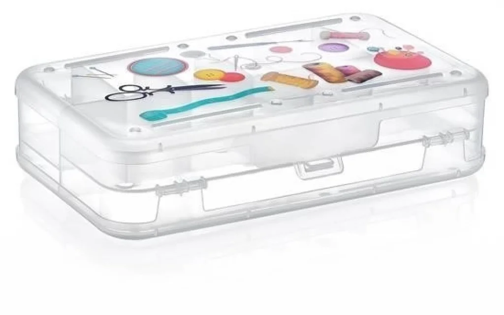 Plastik saklama kutusu içerisine makas, İğne takımları, dikiş ipleri gibi ürünleri rahatlıkla sığdırabilirsiniz
