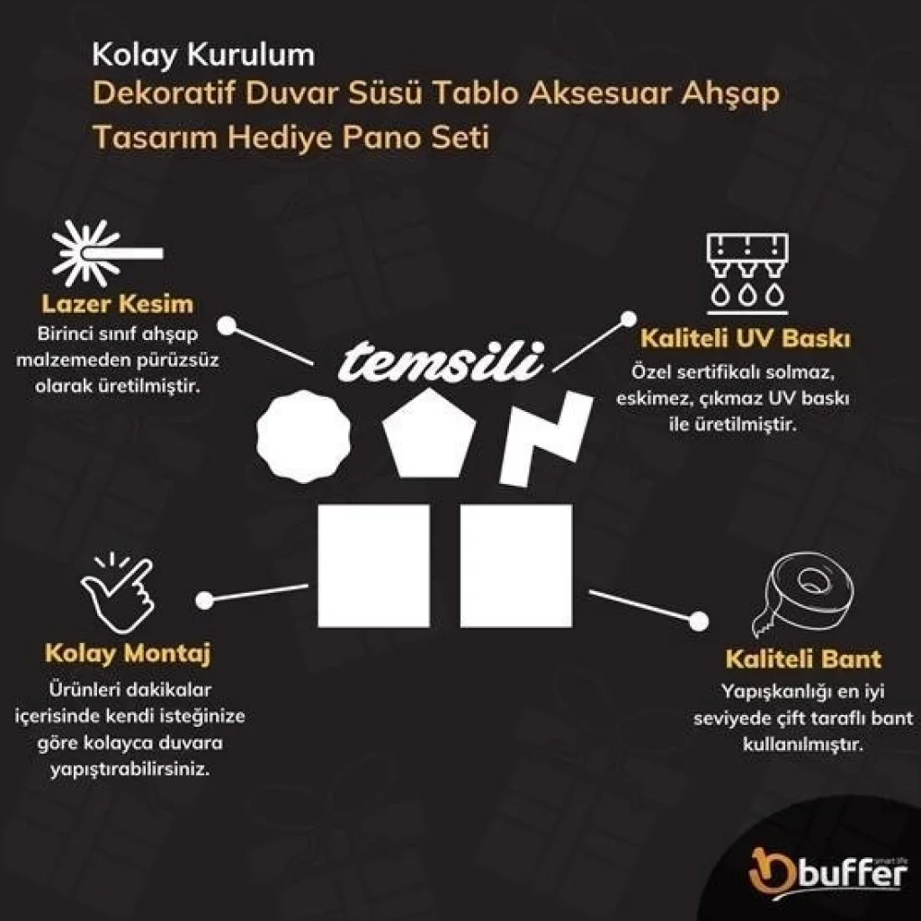 Ürünler lazer kesim ile pürüzsüz olarak üretilmiştir Çevresinde herhangi bir kıymık vs söz konusu değildir