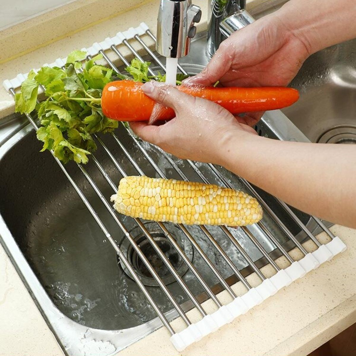BUFFER® Evye Üstü Katlanır Nihale Paslanmaz Çelik Pratik Sebze Meyve Bulaşık Kurutma Süzgeci