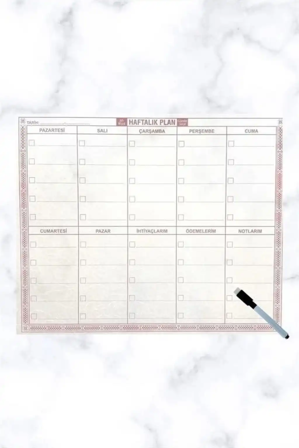 BUFFER® Şeffaf Kendiliğinden Yapışkanlı Kalemli Haftalık Planlayıcı 40cm-50cm