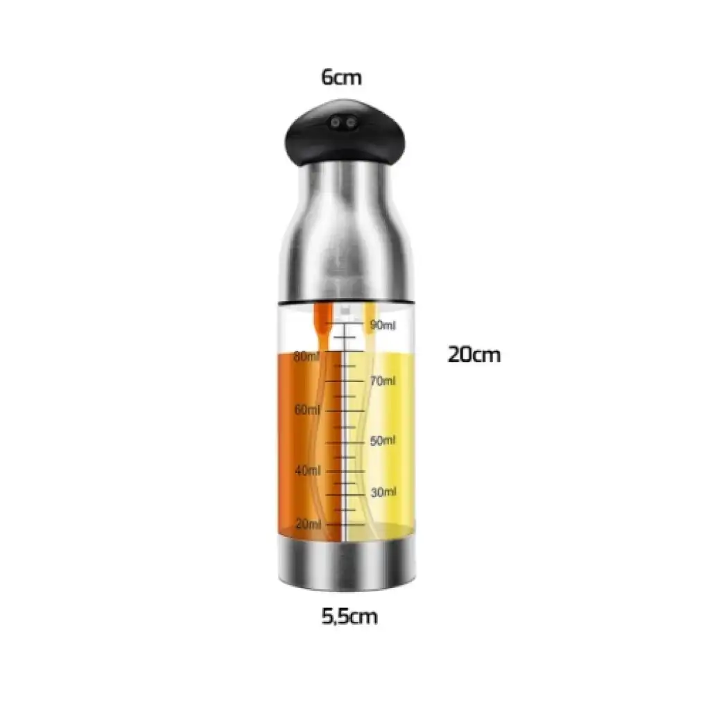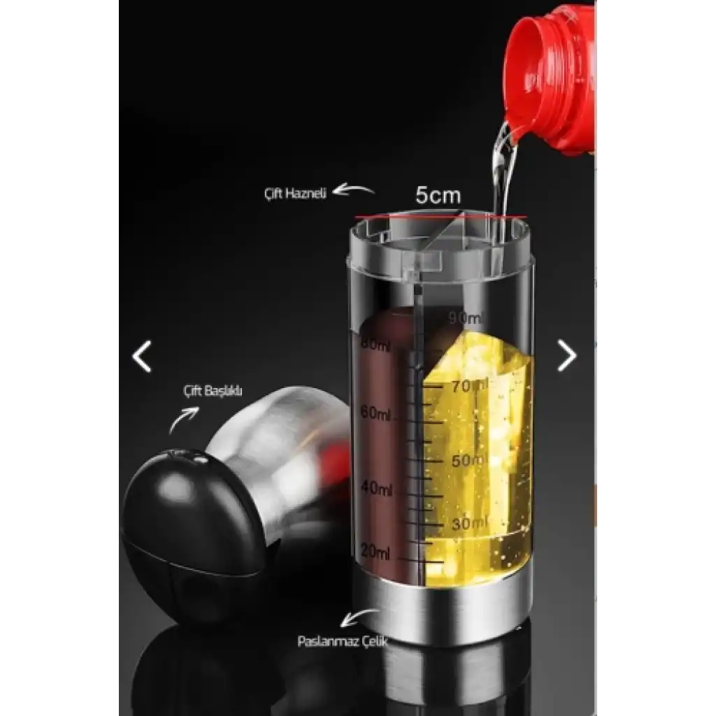 Çift Ölçekli Yağ ve Sirke Sprey ŞişesiÜrün Açıklaması:Bu yenilikçi 90 ml kapasiteli çift ölçekli yağ ve sirke sprey şişesi, mutfağınızda yağ ve sirke kullanımını daha da pratik hale getirir. Şeffaf gövdesindeki çift ölçek skalası sayesinde, yağı veya sirkeyi dilediğiniz miktarda kolayca ölçebilir ve yemeklerinize dengeli bir şekilde ekleyebilirsiniz. Paslanmaz çelik tasarımı, dayanıklılığı ve şıklığı bir araya getirirken, sprey başlığıyla homojen bir dağılım sağlar. Salatalardan kızartmalara kadar her türlü yemeğinizde sağlıklı ve lezzetli bir deneyim yaşamanızı sağlar.Malzeme: Paslanmaz çelik ve şeffaf plastik gövdeKapasite: 90 mlÇift Ölçekli Gövde: İki ayrı ölçüm skalası ile kolay miktar kontrolüSprey Başlığı: Homojen ve kontrollü dağılım için idealKullanım Alanı: Salatalar, kızartmalar ve diğer yemeklerde sağlıklı yağ ve sirke kullanımı