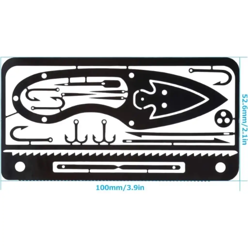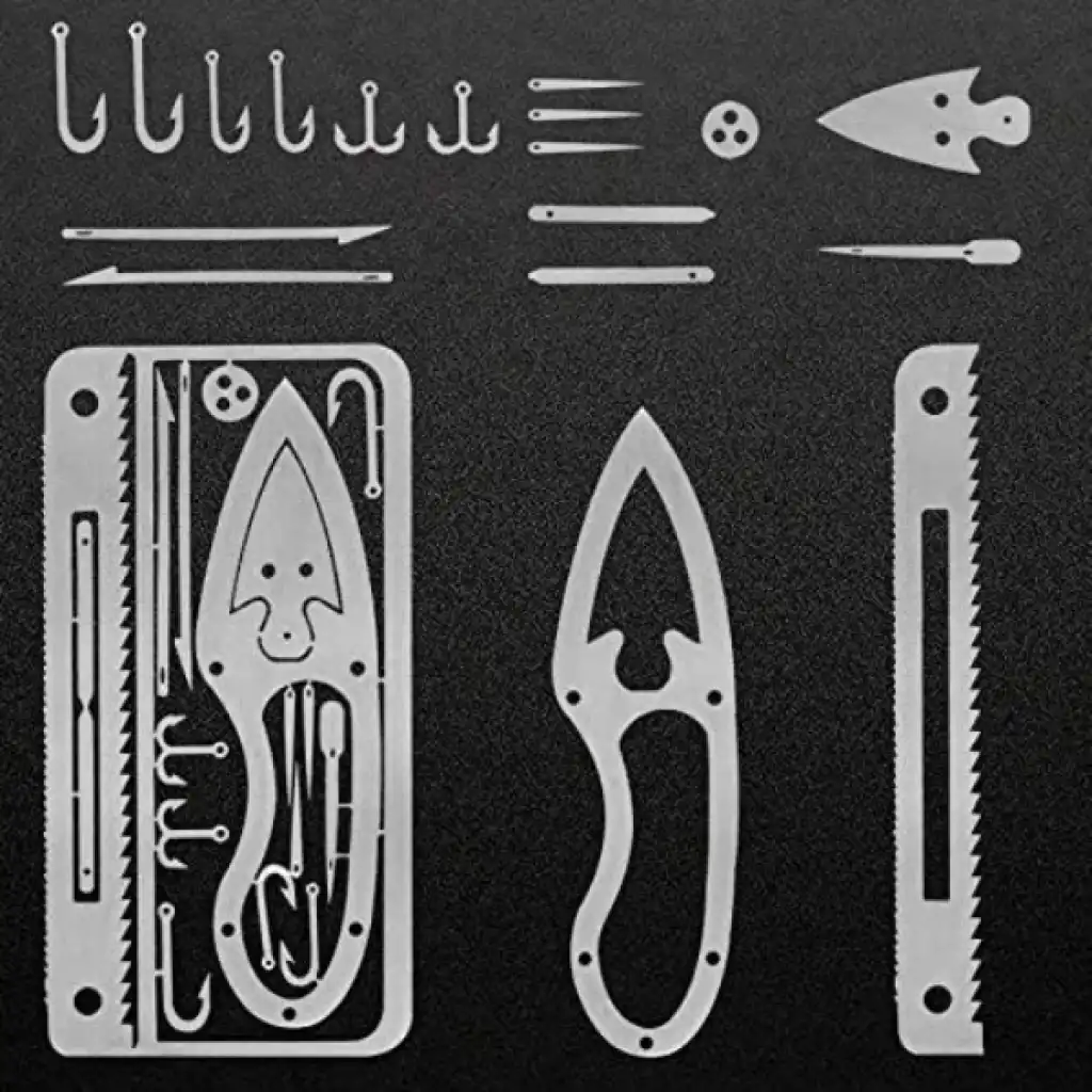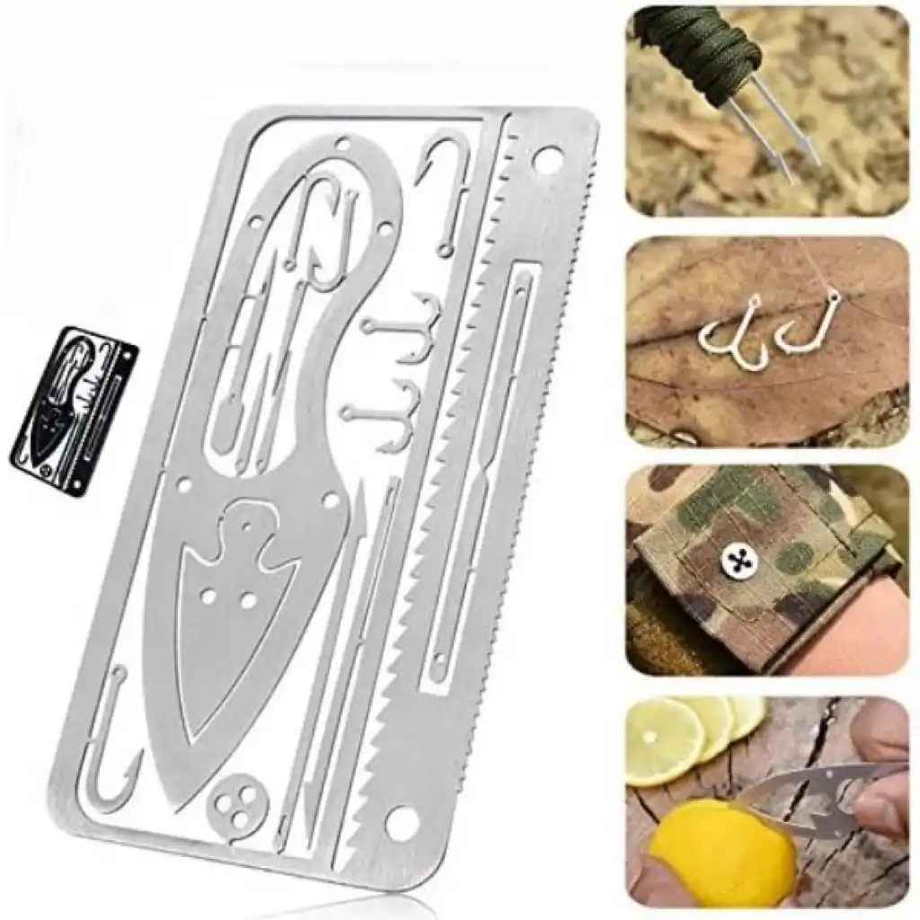 ÇOK FONKSİYONLU HAYATTA KALMA BALIKÇI KİTİÜrün ÖzellikleriKredi kartı boyutundaki bu çok fonksiyonlu hayatta kalma aracı, kamp, doğa yürüyüşü ve acil durumlar için mükemmel bir çözüm sunar. Kompakt ve taşınabilir yapısıyla cüzdanda kolayca taşınabilir ve hafifliği sayesinde yer kaplamaz. Paslanmaz çelikten üretilmiş olup dayanıklı ve uzun ömürlüdür. Araç, bıçak, balık tutma kancası, testereli kenar, vida ve anahtar yuvaları gibi birçok işlevi bir arada sunar. Açık hava etkinliklerinde, günlük tamir işlerinde veya acil durumlarda hayat kurtarıcı olabilir.Paket İçeriği1 Adet Kart Boyutunda Çok Fonksiyonlu Hayatta Kalma Balıkçı Kiti