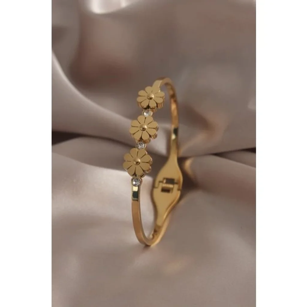 Colezium CLZ741 - 316L Çelik Gold Renk Papatya Figür Zirkon Taşlı Kadın Kelepçe