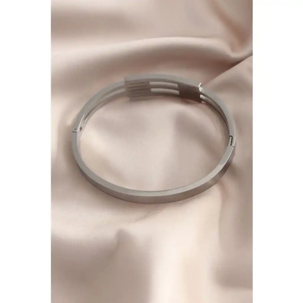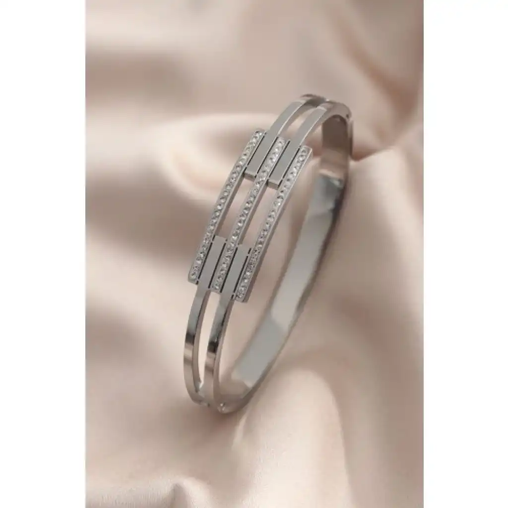 Colezium CLZ741 - Çelik Gümüş Renk Taşlı Kaburga Model Kelepçe Kadın Bileklik