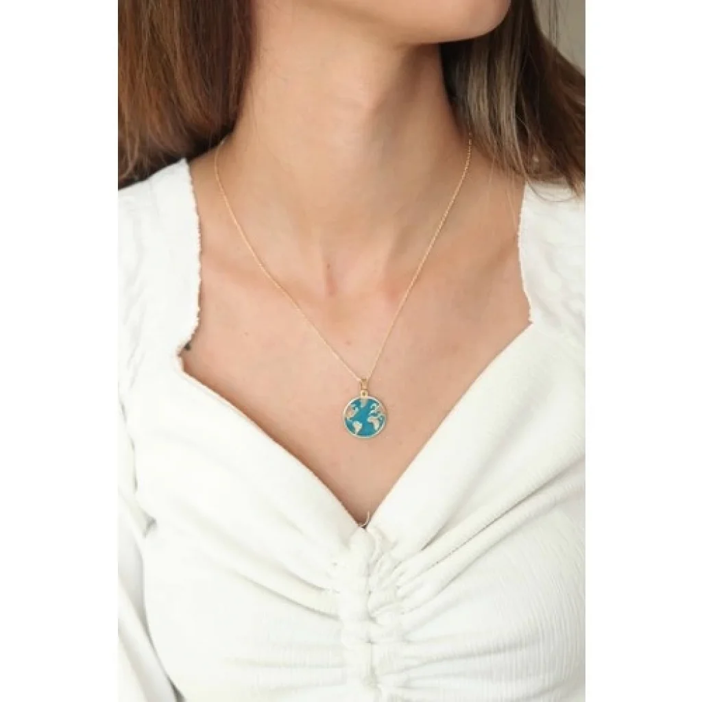 Colezium CLZ741 - Dünya Figürlü Altın Kaplama Kadın Kolye