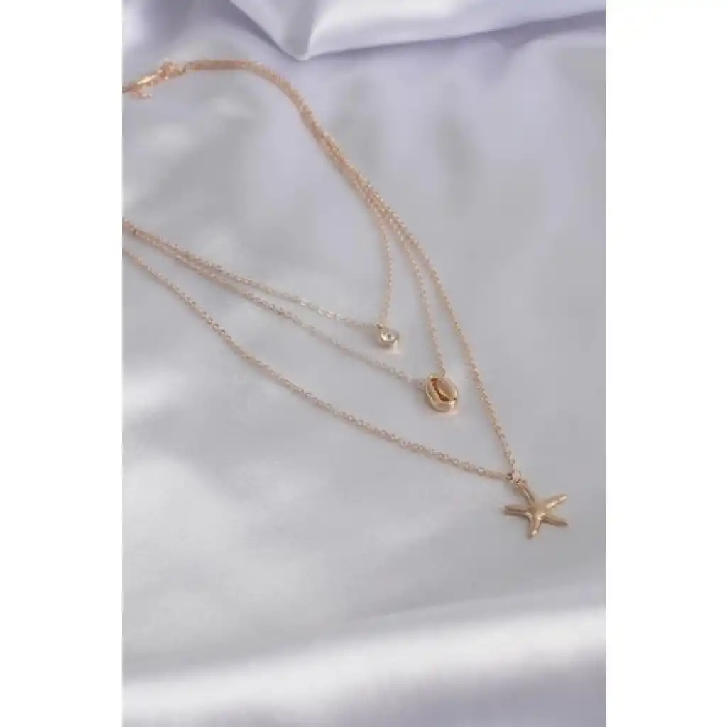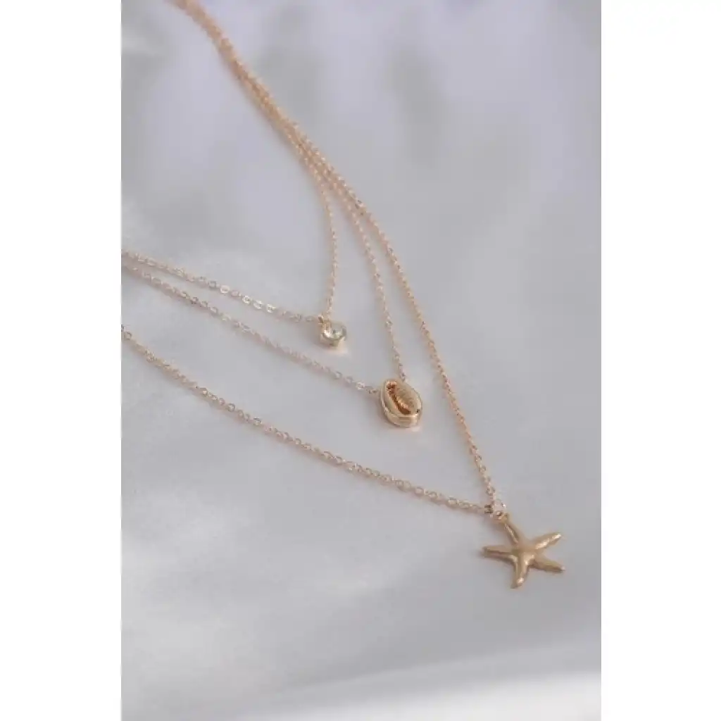 Colezium CLZ741 - Gold Renk 3'lü Deniz Yıldızı Figür Deniz Kabuğu Detay Zirkon Taş Detay Kadın Kolye