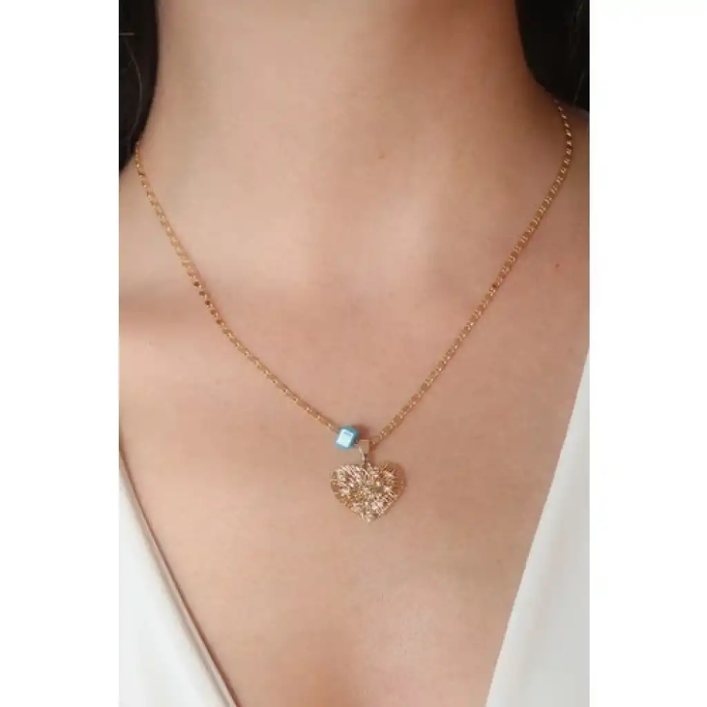 Colezium CLZ741 - Gold Renk Kalp Figür Zirkon Taş Detay Kadın Kolye