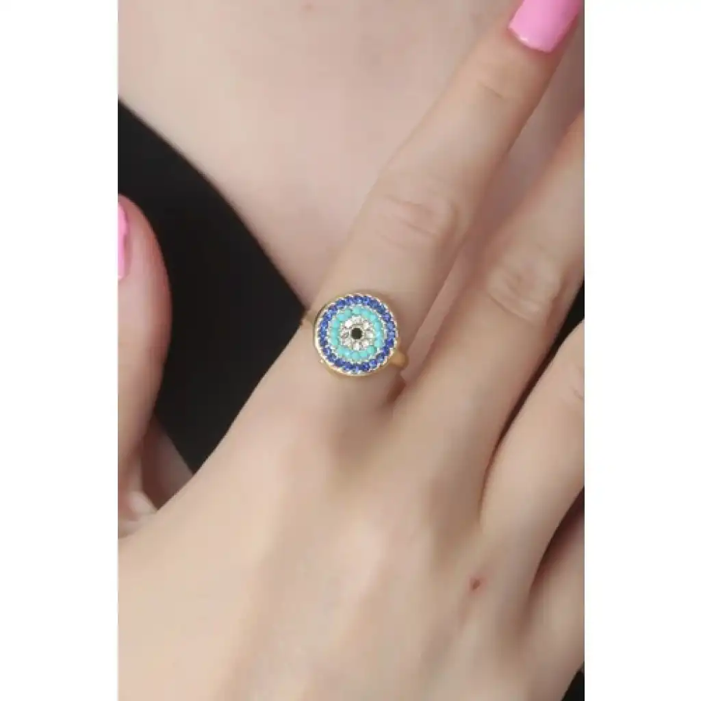 Colezium CLZ741 - Gold Renk Nazar Boncuk Figür Kadın Yüzük
