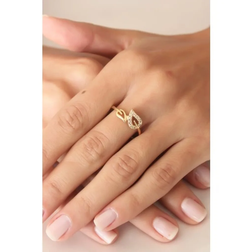 Colezium CLZ741 - Zirkon Taşlı Gold Renk Yaprak Model Kadın Yüzük