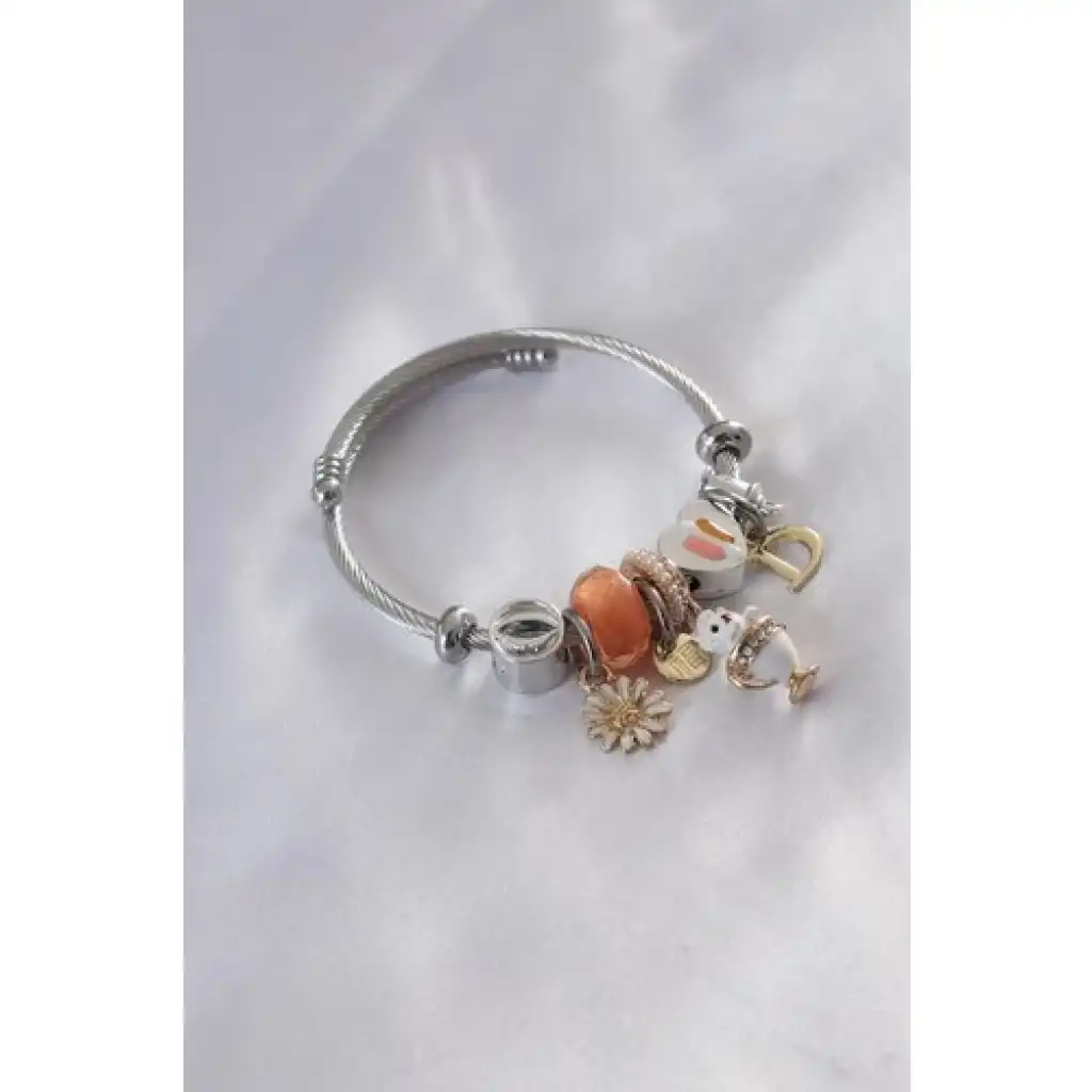 Colezium CLZ943 Çelik Charm Model Fincan Kedi Figür Çiçek Detay Zirkon Taşlı Kadın Bileklik