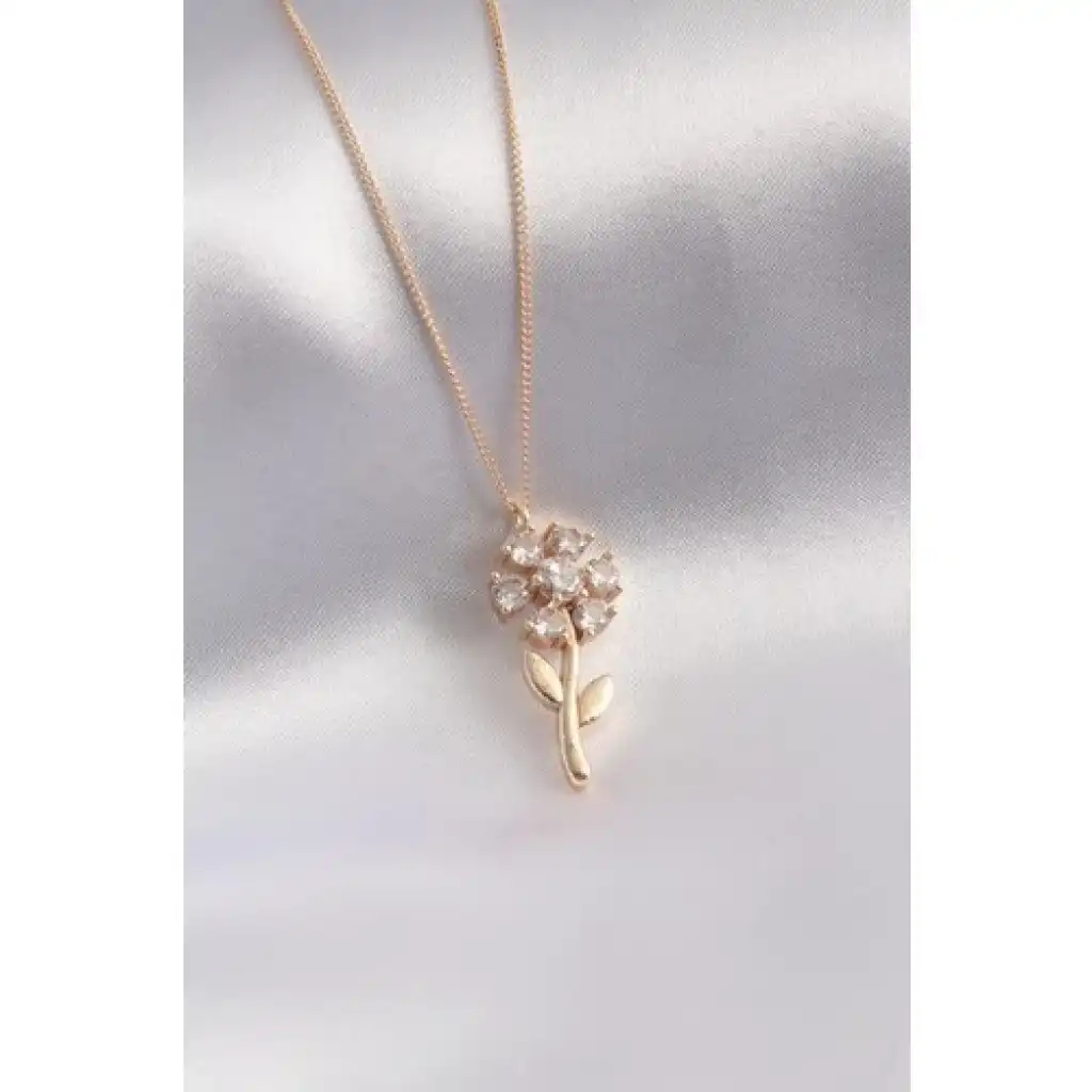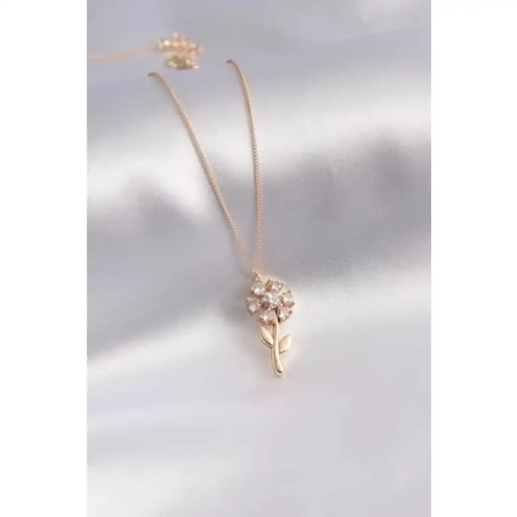 Colezium CLZ943 Gold Renk Çiçek Model Zirkon Taşlı Kadın Kolye