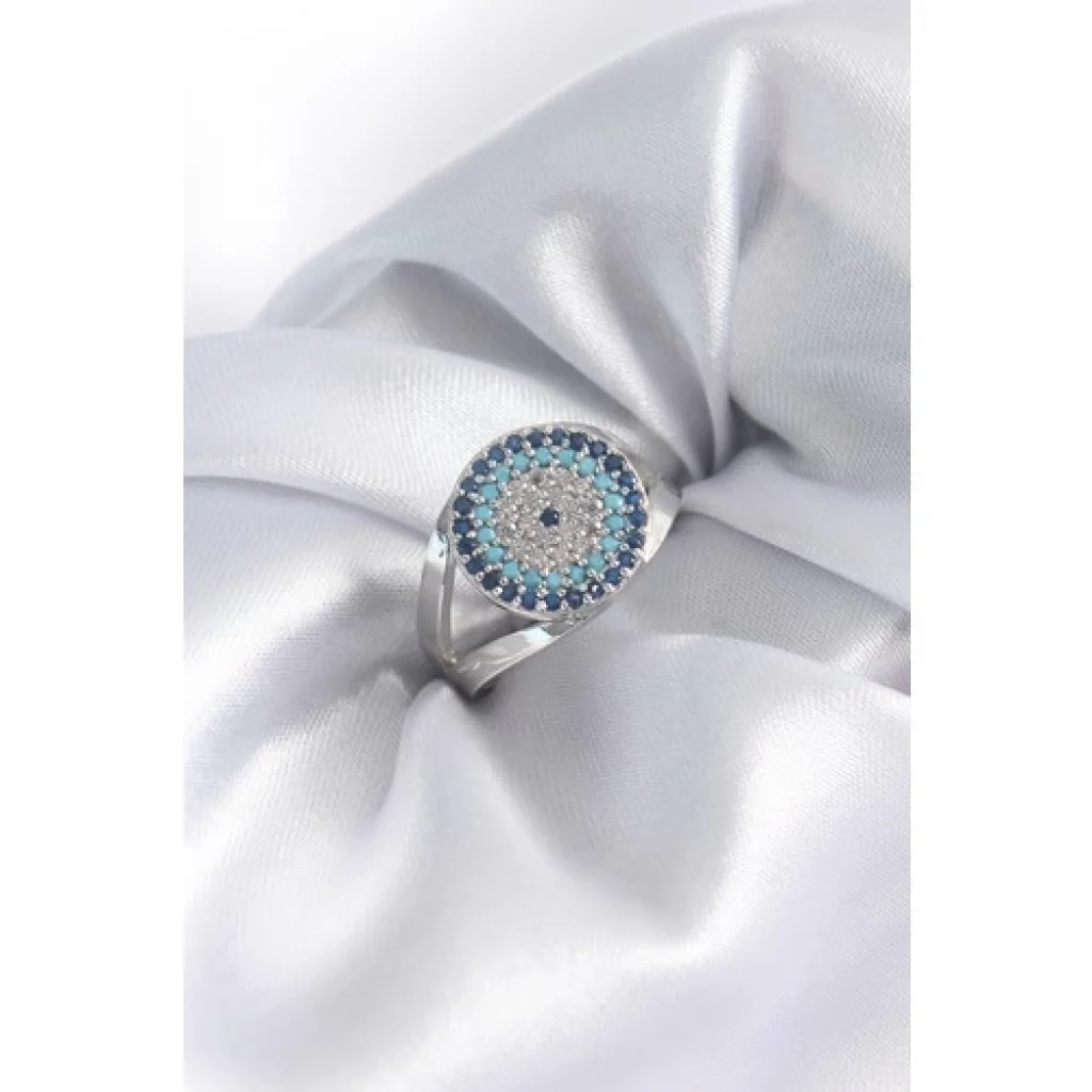 Colezium CLZ943 Gümüş Renk Zirkon Taşlı Nazar Boncuk Model Kadın Yüzük