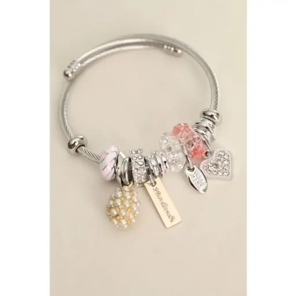 Colezium CLZ943 Inci Detaylı Taşlı Kalp Model Charm Bilezik