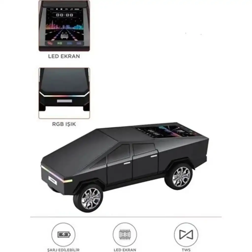 D68 Cyber Model Araba Tasarımlı Bluetooth Hoparlör 15W Güçlü Ses Rgb LED /tws/usb Siyah